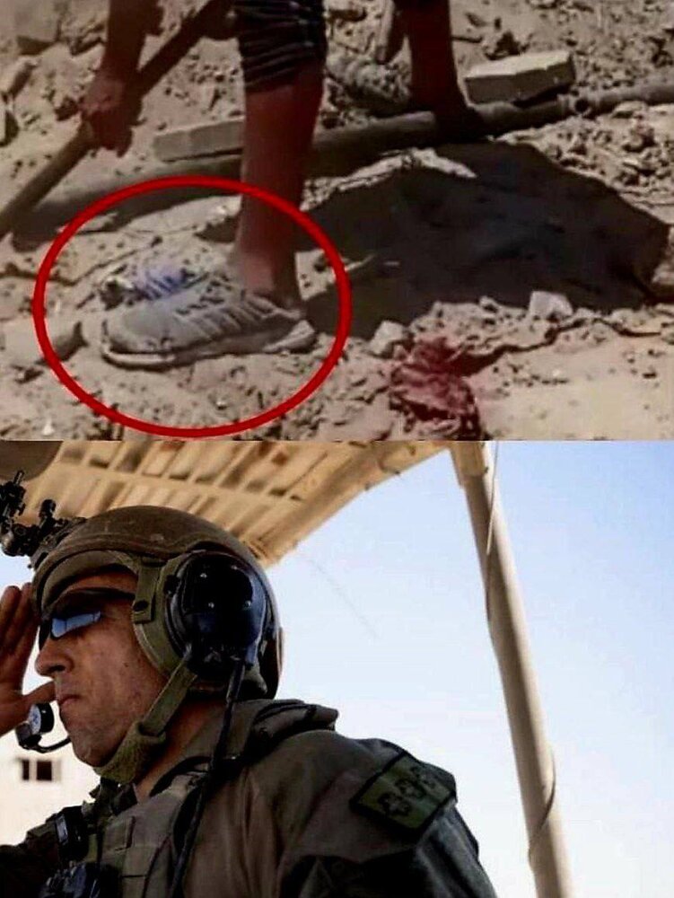 در این تصویر نیروی حماس با کفشی پاره در حال بمبگذاری مسیر تانک فرمانده تیپ 401 زرهی ارتش اسرائیل است که به عنوان عالیترین فرمانده اسرائیلی در این جنگ کشته میشود.