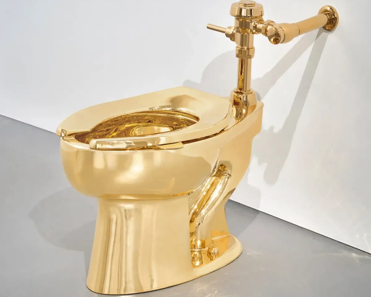 یک توالت ۱۸ عیار طلای ناب به قیمت حیرتانگیز ۱۲ میلیون دلار در حراج ساتبیز فروخته شد! این اثر هنری مائوریتزیو کاتلان، ترکیبی از لوکس بودن و طنز است که قبلاً در موزه گوگنهایم هم نصب شده بود. یک توالت ۱۸ عیار طلای ناب به قیمت حیرتانگیز ۱۲ میلیون