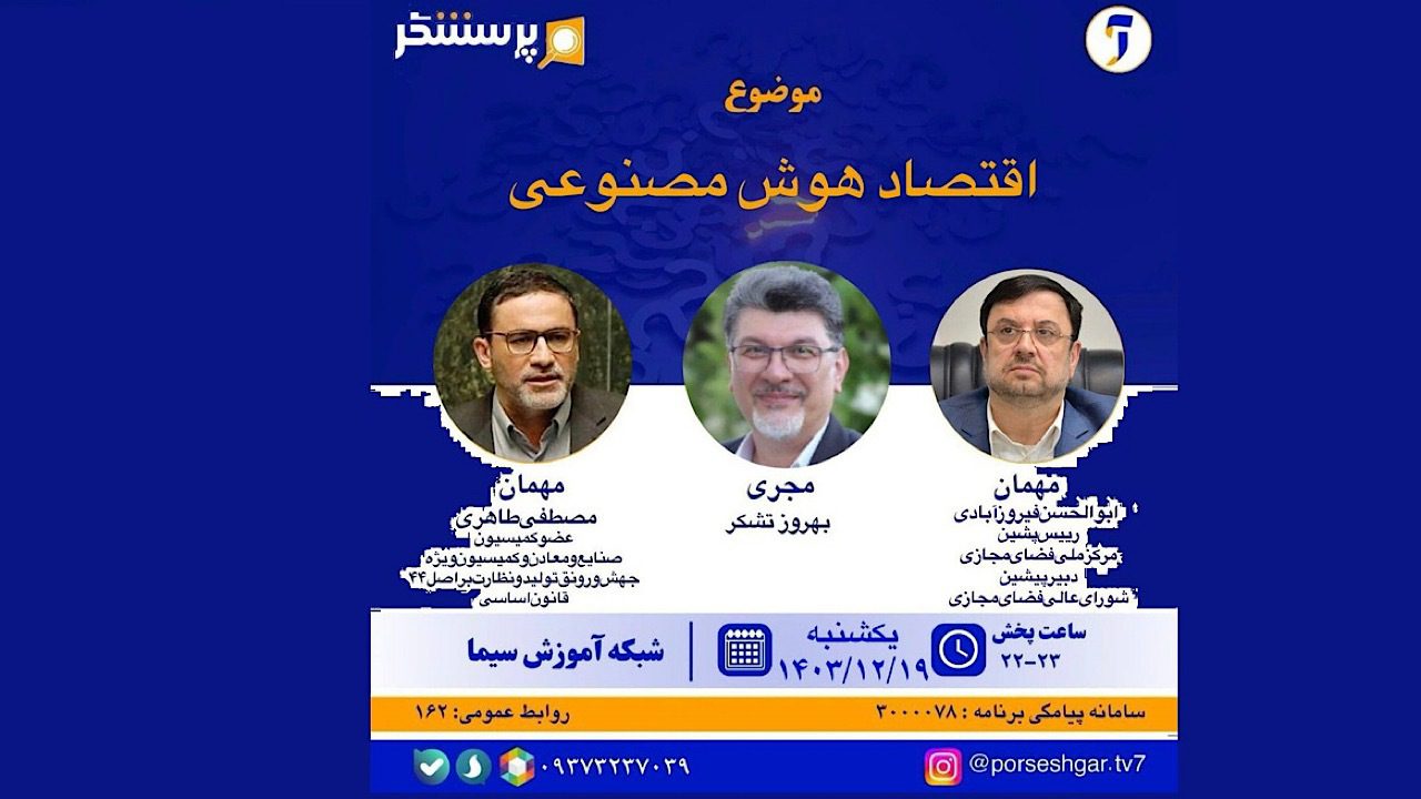 ۱۷:۴۱ – ۱۹ اسفند ۱۴۰۳ باشگاه خبرنگاران جوان ـ برنامه «پرسشگر» یکشنبه ۱۹ اسفند با حضور مصطفی طاهری نماینده مجلس و سیدابوالحسن فیروزآبادی رئیس پیشین مرکز ملی فضای مجازی به موضوع اقتصاد هوش مصنوعی میپردازد. همچنین «پرسشگر» روز دوشنبه ۲۰ اسفند ماه میزبان محسن کیالاشکی رئیس گروه برق و